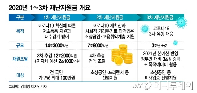 정부가 신종 코로나바이러스 감염증 (코로나19) 3차 확산으로 피해를 본 소상공인과 특수형태근로자 (특고)·프리랜서 등 고용 취약계층에 대한 3차 재난지원금을 11일부터 지급한다.